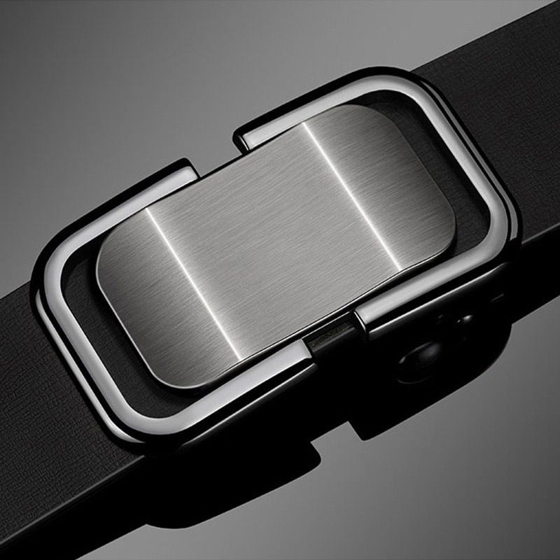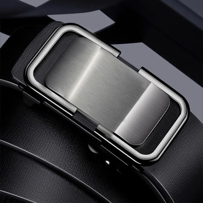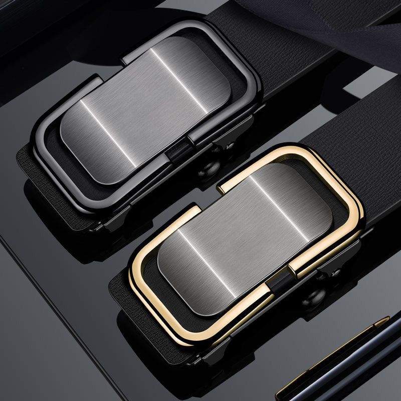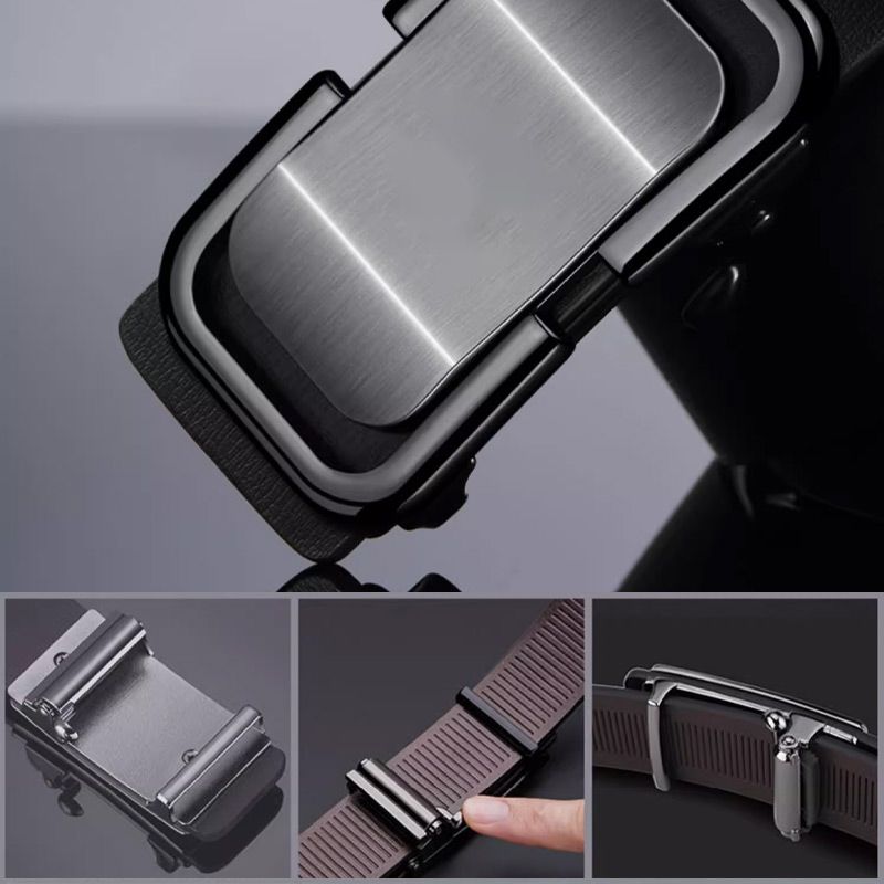 Skub blot bæltet ind i spændet og træk læderbæltet igennem, spændet låser simpelthen automatisk bæltet og frigør spændet ved blot at flytte et lille håndtag. Enkle, glatte ogmoderigtige designbælter til mænd.