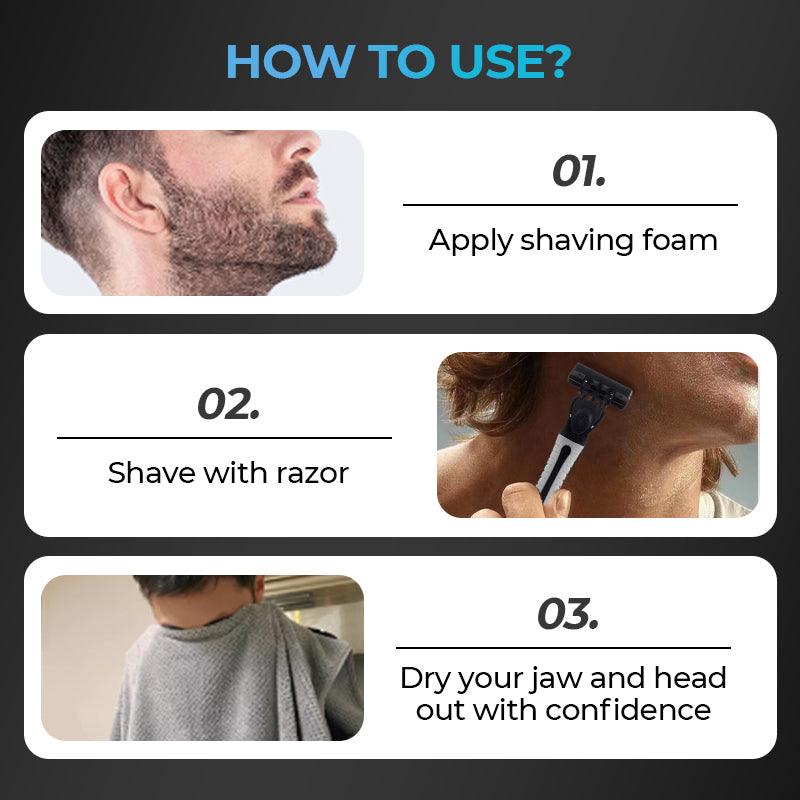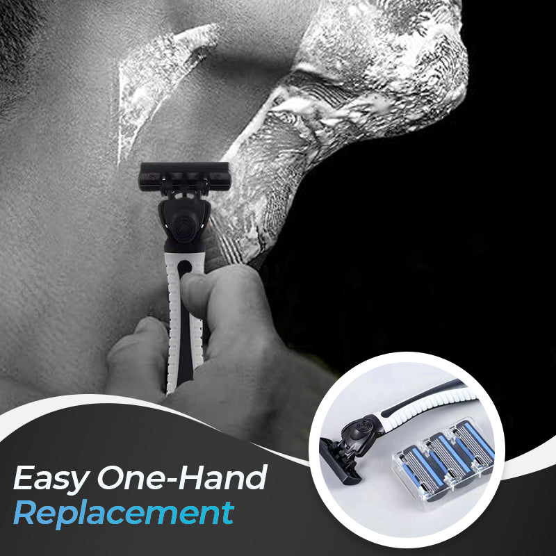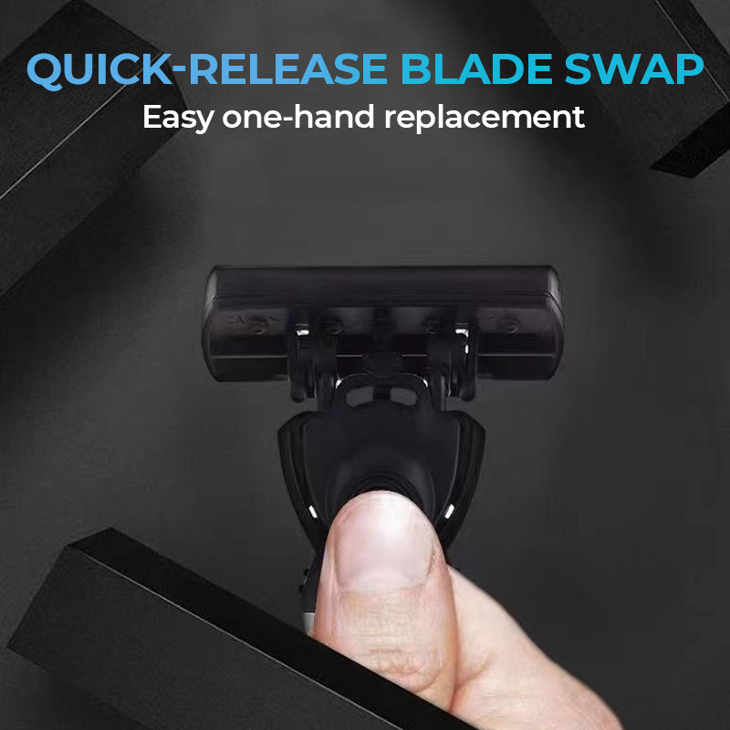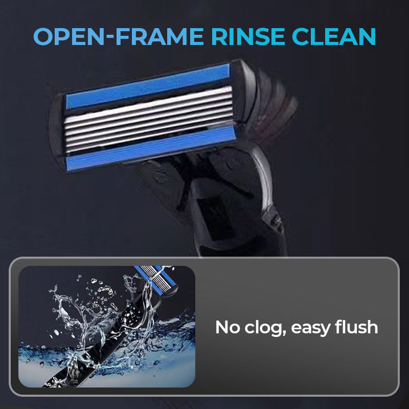 KNIVE MED ÅBEN STRUKTUR FOR NEM SKYLNING: Det L-formede bladdesign med en åben ramme tillader vand at flyde frit under skylning, skyller indespærret hår ud og barberingsrester øjeblikkeligt. Dette forhindrer tilstopning og opretholder maksimal ydeevne, hvilket sikrer hygiejnisk brug med lav vedligeholdelse efter hver barbering.
