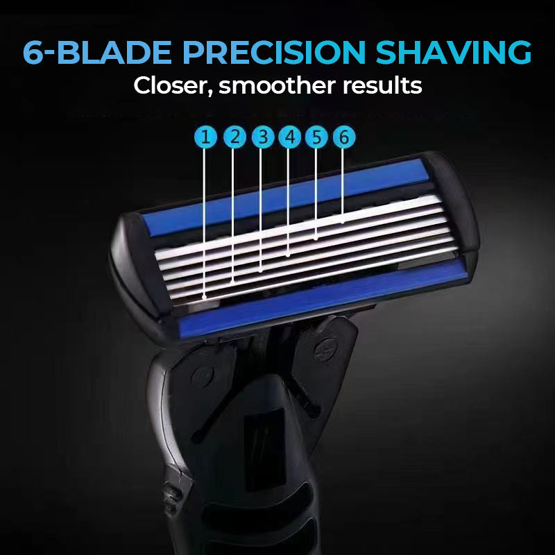 PROGRESSIVT 6-BLADSSYSTEM: Konstrueret med seks præcisionsjusterede blade, der gradvist klipper hår, reducerer træk og giver en ultratæt barbering. Det vinklede arrangement følger ansigtets konturer, mens buede L-formede blade sikrer jævn trykfordeling for jævne resultater.