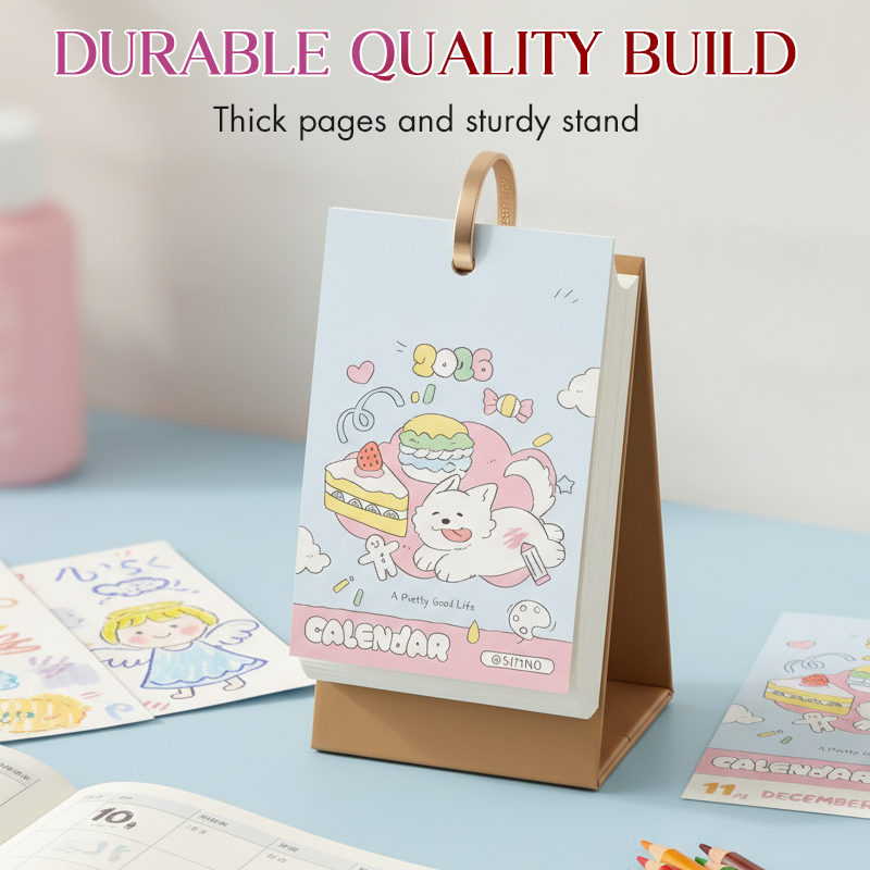 LAVET TIL AT HOLDE, LAVET TIL AT NYDE - Denne kalender er fremstillet af farvepapir i høj kvalitet og har et robust trekantet stativ, så den forbliver lys, stabil og klar til daglig kreativitet. De tykke sider holder farverne klare uden at bløde ud, mens de glatte metalringe gør det nemt at bladre eller vise dine favoritter.
