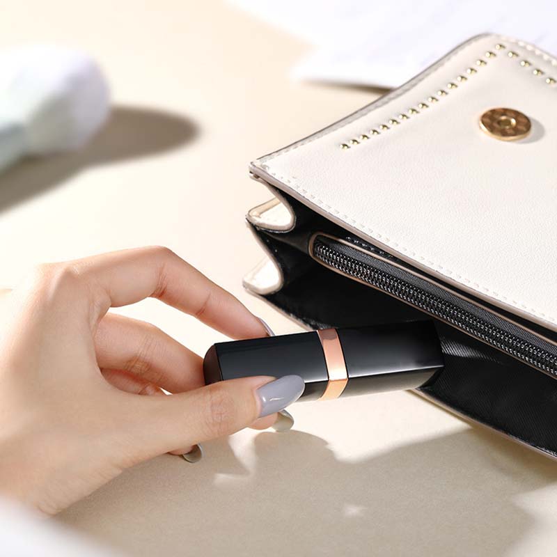 PRAKTISK AT BÆRE: Det unikke læbestiftdesign er kompakt og let og kan bæres rundt, så du nemt kan tilføje farve til dit hår.