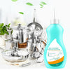 Vores seneste version af Gel Cleaner hjælper dig med at løse alle disse problemer, så du kan sige farvel til besværet med at rense fedt og snavs med en kniv og spatel. Det forårsager ingen fysisk skade, indeholder ingen ætsende ingredienser og genopretter effektivt glansen på din nye pande.