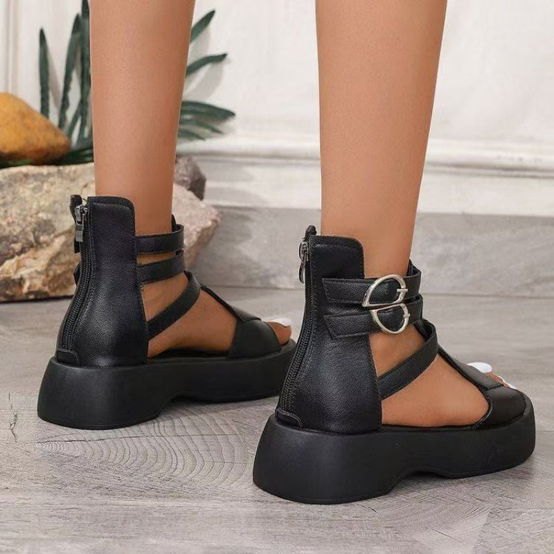 Sandaler til kvinder med åben tå og flere remme med tyk sål