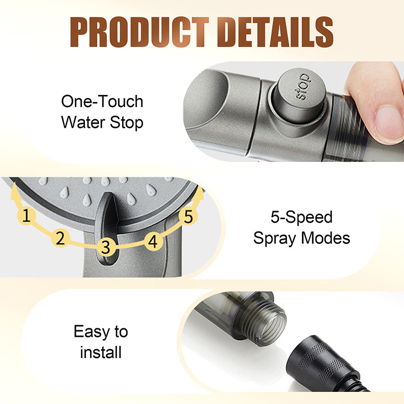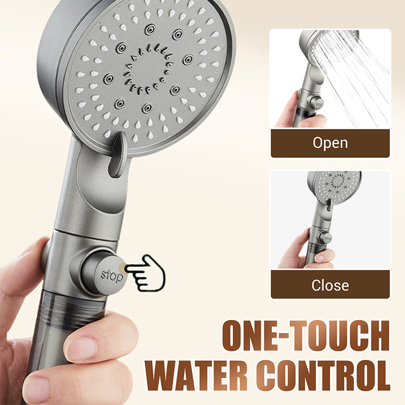 ONE-TOUCH VANDKONTROL: Trykknapdesignet giver mulighed for øjeblikkelig tænd/sluk-kontrol af vandstrømmen, hvilket eliminerer behovet for at justere en knap. Det sparer vand, samtidig med at det giver praktisk fingerspidskontrol under brusebad.