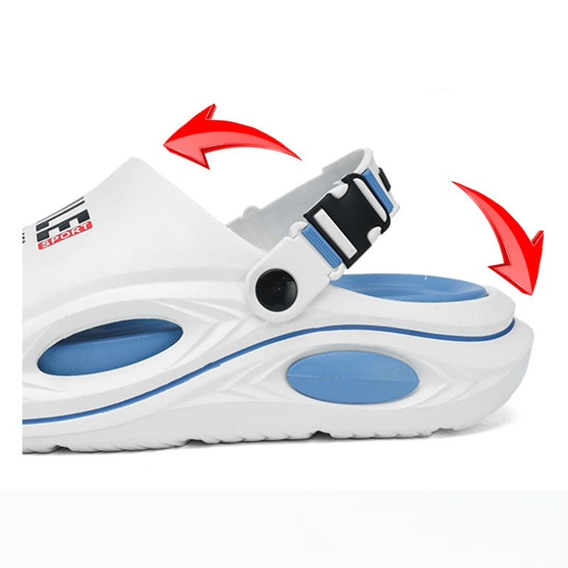 CONVERTIBLE HEEL STRAP FUNCTION: Den justerbare bagrem kan omdannes fra sikker hjemmesko til åben sandal på få sekunder. Du skal blot vippe den ned, så du hurtigt kan tage den på, eller spænde den op, så du får stabil støtte, når du bevæger dig aktivt rundt i huset.