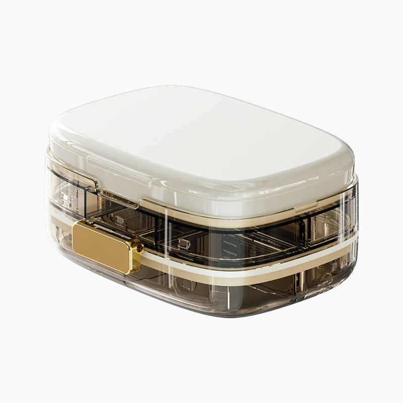 INTELLIGENT DESIGN MED TI RUM- Ti uafhængigt forseglede rum isolerer fuldstændigt forskellige kosttilskud. Hvert rum rummer 2-3 standardkapsler eller tabletter, hvilket letter den daglige doseringsstyring og samtidig forhindrer krydskontaminering af lugte og smagsstoffer mellem rummene.