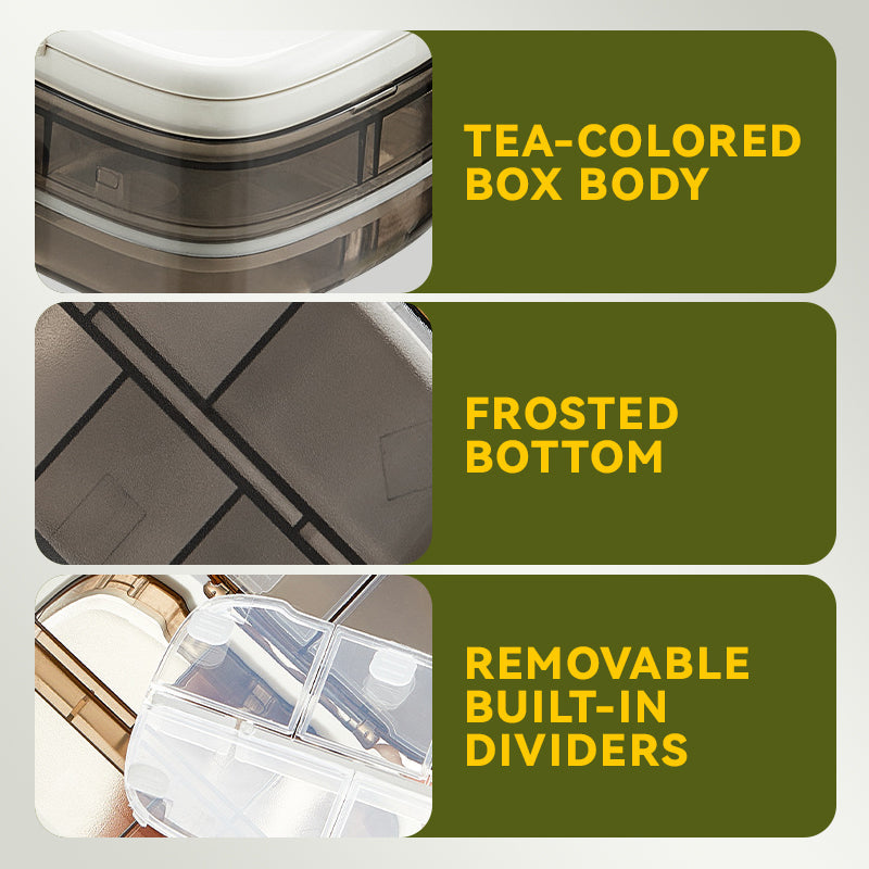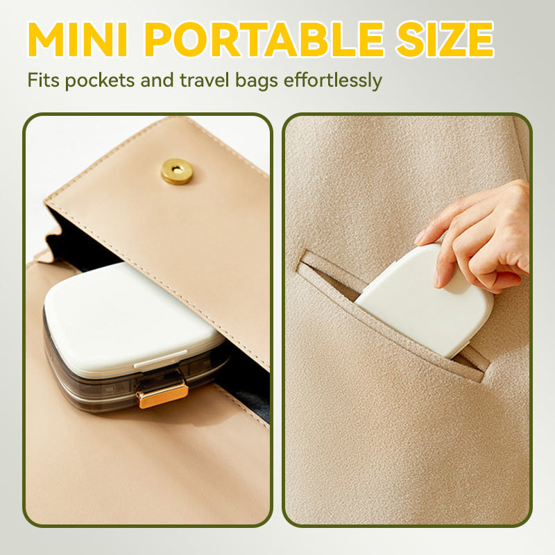 MULTIFUNKTIONEL OPBEVARINGSKAPACITET- Ud over pilleorganisering opbevarer de aftagelige rum perfekt smykker som øreringe og ringe, krydderier under rejser, sysæt og andre små nødvendigheder. Den lufttætte forsegling holder indholdet sikkert og beskyttet mod fugt og luft.