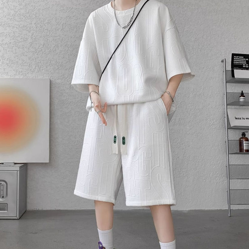 1 * Mænds Plus størrelse kortærmet T-shirt og shorts træningsdragt