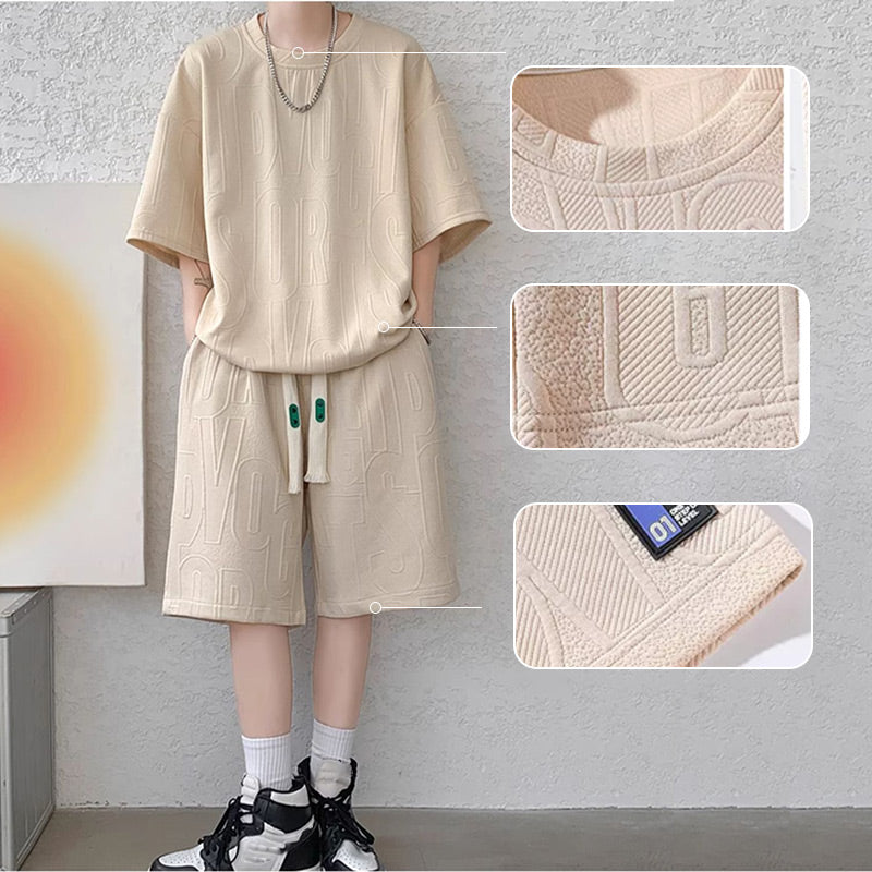 Plus Size kortærmet T-shirt og shorts træningsdragt til mænd er designet til at give komfort, stil og en perfekt pasform til mænd i alle størrelser.
