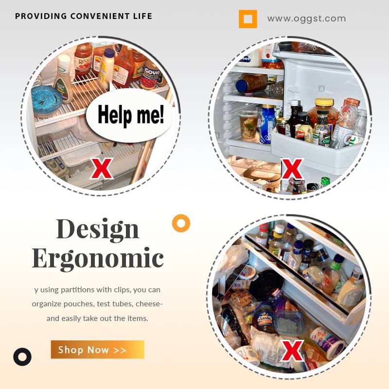 Ved at klemme den fast i køleskabets dørlomme kan du gøre det organiseret og lettere at tage genstandene ud i dørlommen.