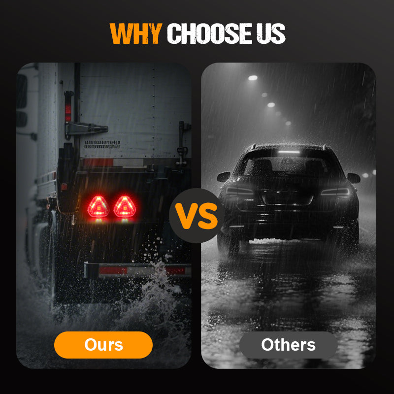 STROBOSKOPTILSTANDE MED HØJ SYNLIGHED: Udstyret med ultralyse flerfarvede LED-chips, der tilbyder 6 blinkende mønstre, herunder rød-blå blitz, syvfarvede streams og mere. Forbedrer udsynet bagud for at forhindre kollisioner bagud eller påkørsler bagfra.