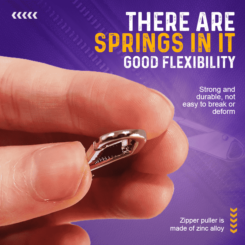 Lynlåsen er lavet af zinklegering og stålfjeder, hvilket gør den robust og holdbar, kan bruges i lang tid, og sammenlignet med andre udskiftningslynlåshoveder er den ikke let at bryde eller deformere. Efter omhyggelig polering ridser den ikke dine hænder. Du kan vælge frit mellem fire forskellige farver, og du kan vælge forskellige farver, så de passer til dine ting.