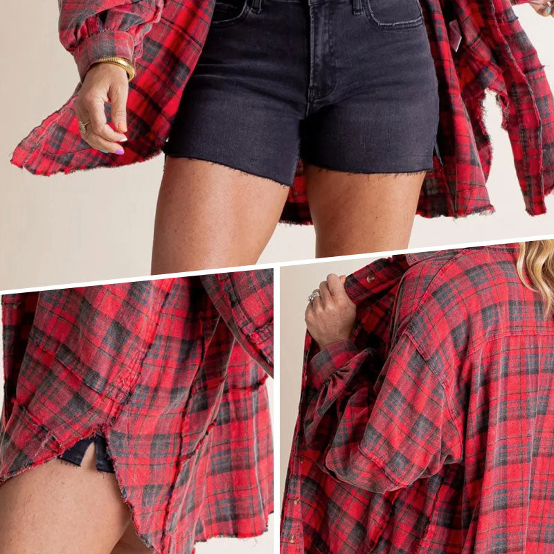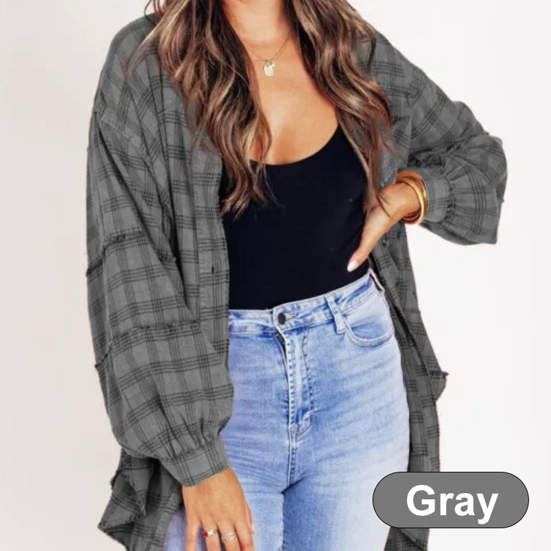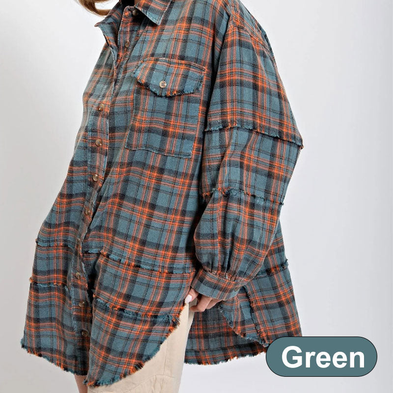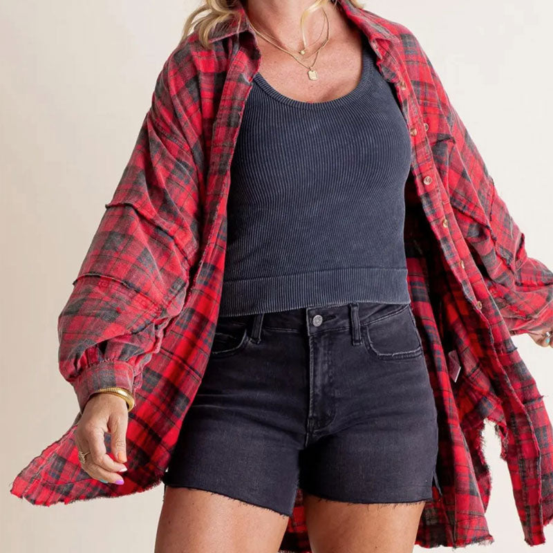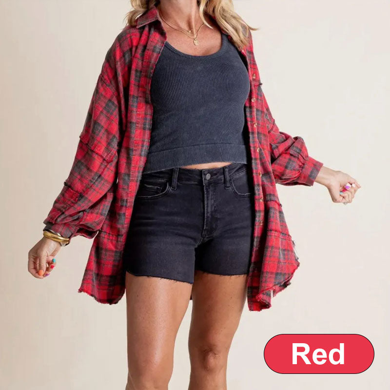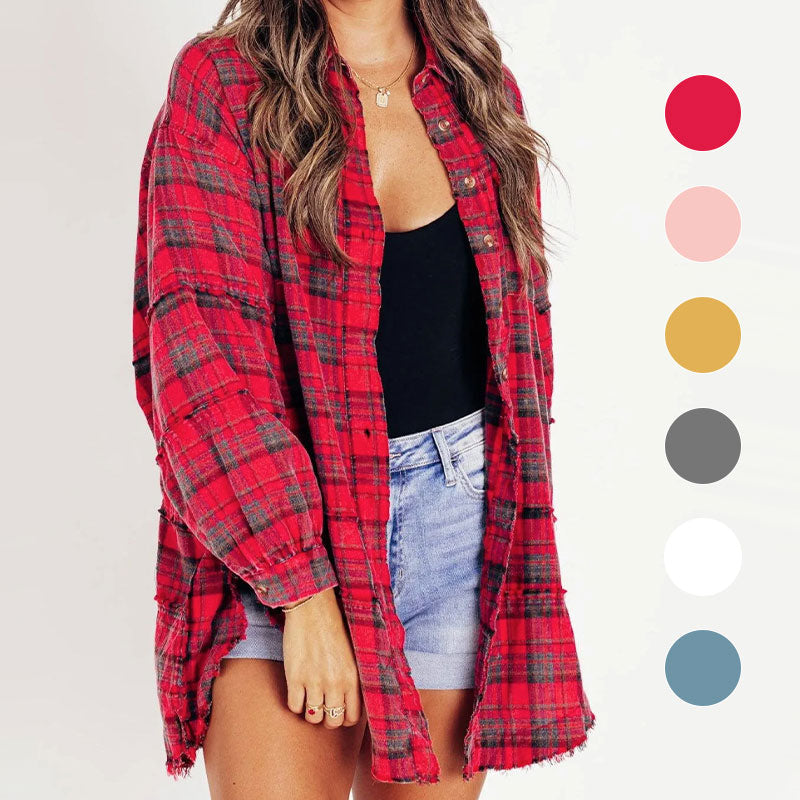 Oversized skjortejakke med lommer og rå kanter til kvinder