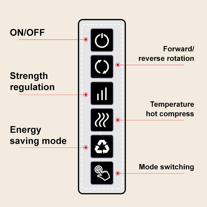 VARMEFUNKTION - Den ekstra varmefunktion hjælper med at forbedre blodcirkulationen og giver en beroligende varme for at forbedre din massageoplevelse.